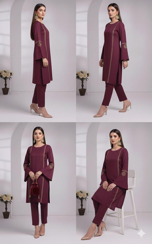Cherry - 2pc Embroidered Suit -Premium Winter Fabric